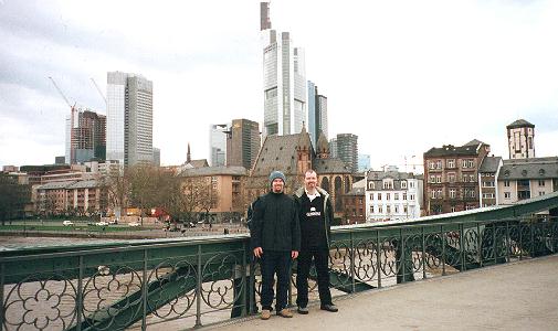 Steve and John on the Eiserner footbridge across the Main river, in 2002.